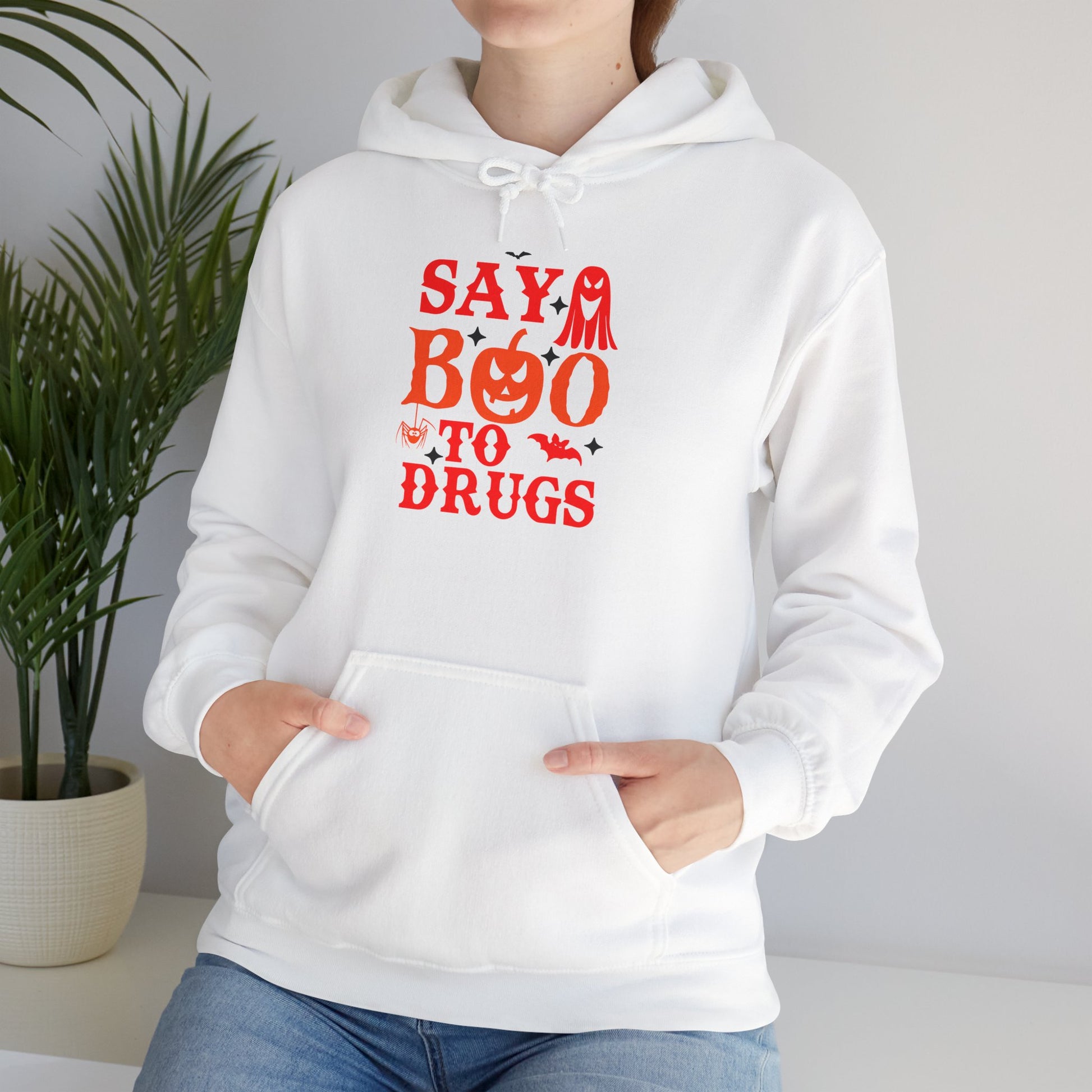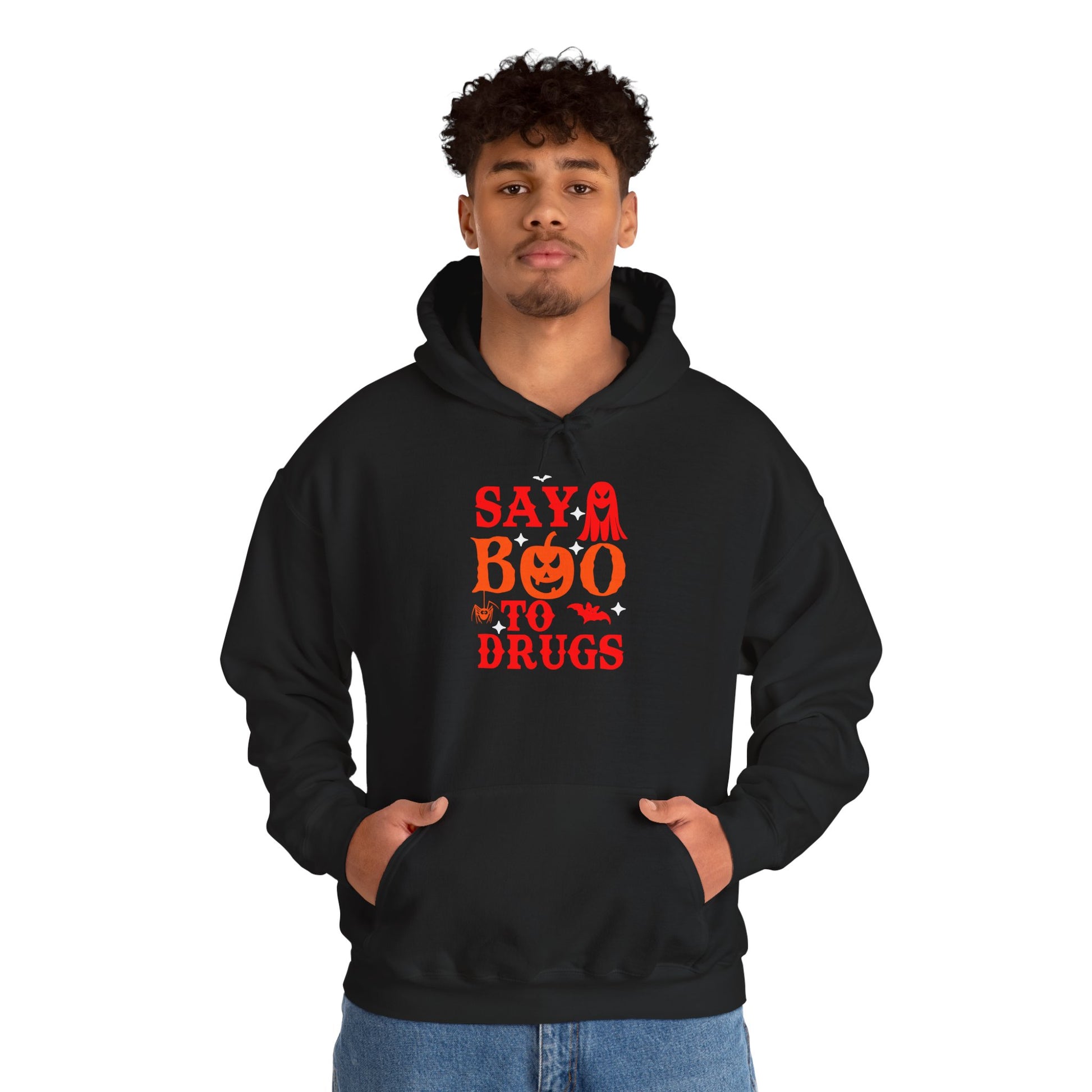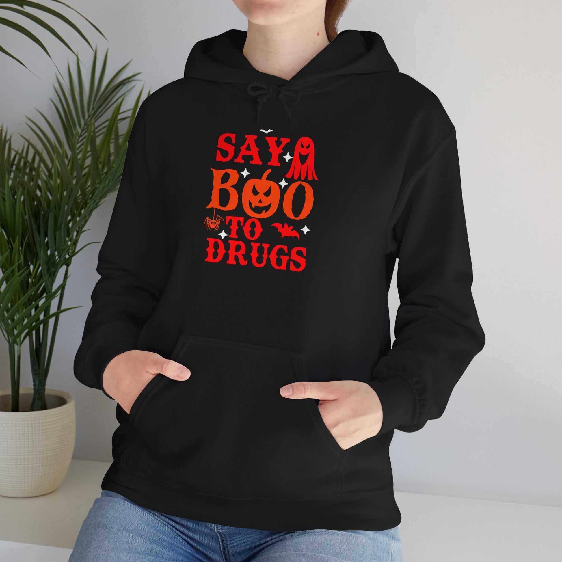 Embrace the cozy charm of this Unisex Hooded Sweatshirt, perfect for bringing a fun and spirited vibe to your wardrobe. With its playful design featuring "Say Boo to Drugs," this sweatshirt is not only a stylish statement piece but also a thoughtful reminder for healthy choices. Ideal for casual outings, Halloween celebrations, or simply lounging at home, it effortlessly combines comfort with a playful edge. Whether you're gifting it to a friend or treating yourself, this sweatshirt appeals to adults who appreciate both style and meaningful messages. Perfect for Halloween, anti-drug awareness campaigns, or as a cozy staple for chilly days, it will be a go-to favorite all season long.