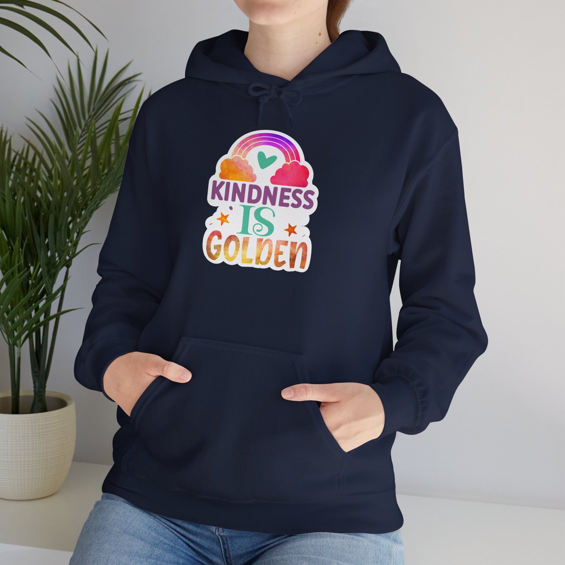 This Unisex Heavy Blend™ Hooded Sweatshirt radiates positivity and warmth, perfect for those who embrace kindness in their everyday lives. With its cheerful "Kindness is Golden" design, this hoodie encapsulates a sense of community and goodwill, making it an ideal choice for casual gatherings or cozy nights in. Its spacious kangaroo pocket provides both style and functionality, ensuring your hands stay warm while adding a touch of convenience. Ideal for friends, family, or anyone who cherishes kindness, this sweatshirt is perfect for gifting during holidays, birthdays, or as a thoughtful gesture during times of need. Crafted with comfort in mind, it's suitable for both lounging at home or running errands.