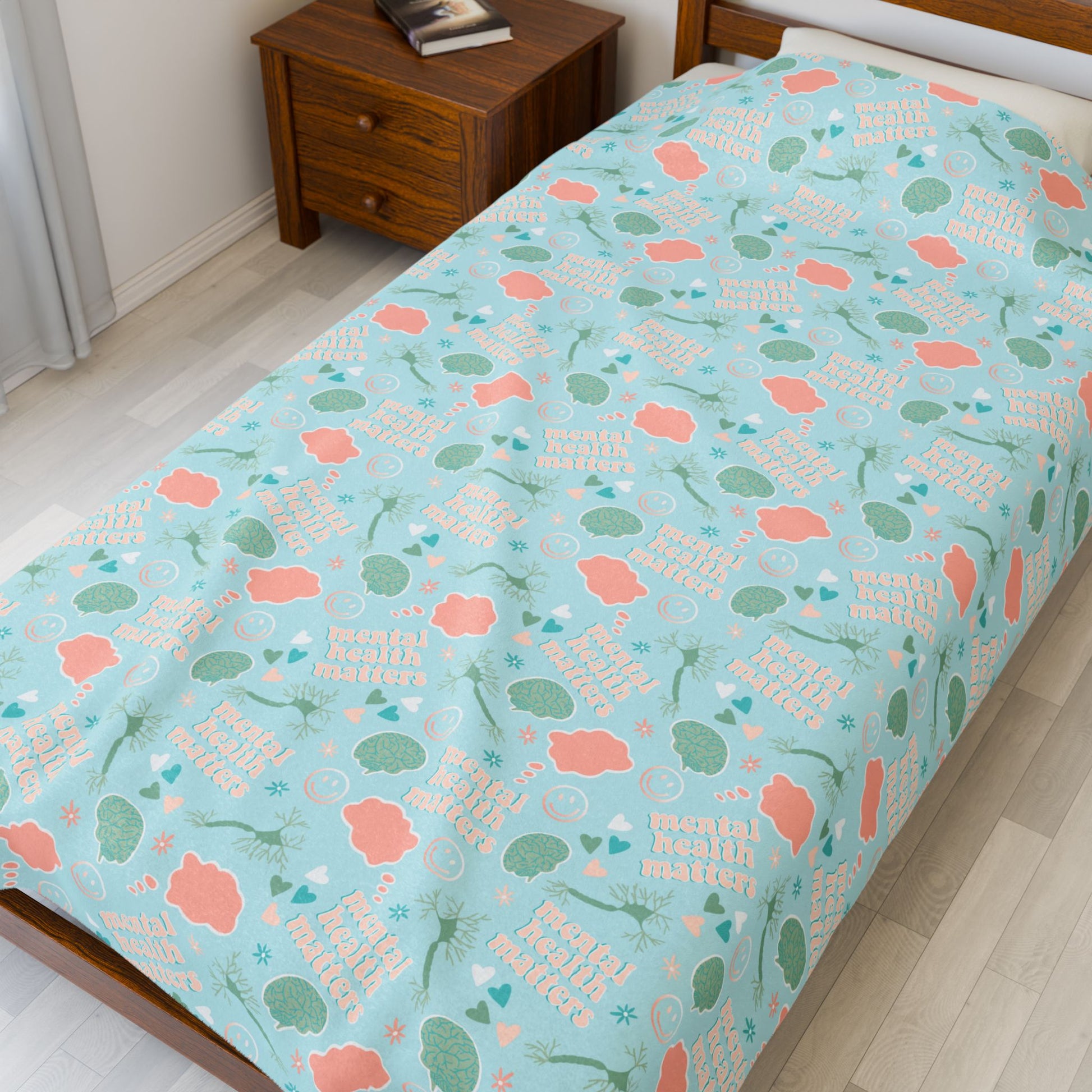 Mental Health Matters Pattern | Velveteen Plush Blanket